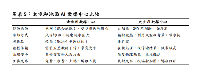 随着 AI 算力需求爆发式增长,我们预计太空数据中心将成为太空光伏长期核心增长点。除发射成本外,太空数据中心相比地面数据中心优势明显: