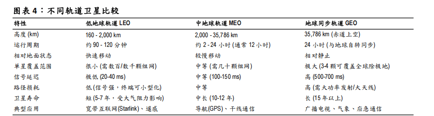 按轨道高度划分,卫星轨道主要分为:1)低地球轨道(LEO,160-2000 公里);2)中地球轨道(MEO,2000-35786 公里)和 3)地球同步轨道(GEO,35786公里赤道上空)。不同轨道的技术特性决定了其能源需求与光伏适配性的差异,其中低轨卫星凭借低延迟、发射成本低、适配高功耗载荷等核心优势,成为商业航天的绝对主流,我们预计其占全球商业航天卫星总量的比例将超95%,是卫星互联网、太空数据中心等核心场景的主要载体,也因此成为太空光伏的核心需求场景。