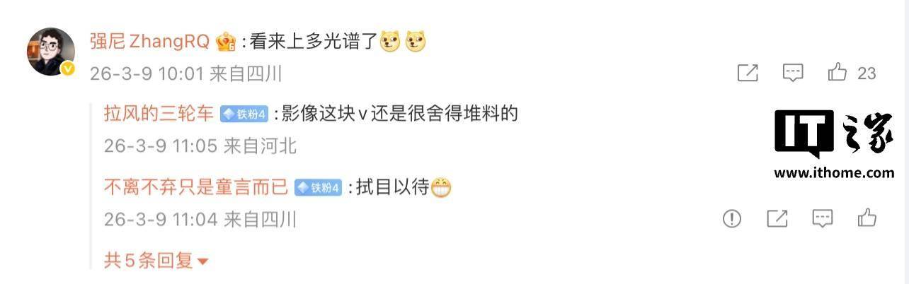 值得注意的是,韩伯啸分享的 X300 Ultra 实拍图里还有一小块被“墨镜”遮住,部分评论区用户认为这是多光谱传感器。